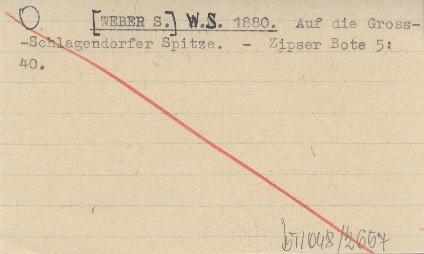 W.S. [WEBER S.] 1880 Auf die Gross-Schlagendorfer Spitze.