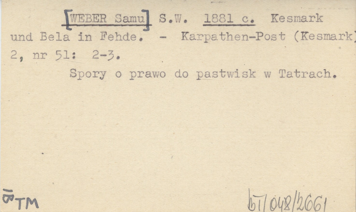 S.W. [WEBER Samu] 1881 c Kesmark und Bela in Fehde.