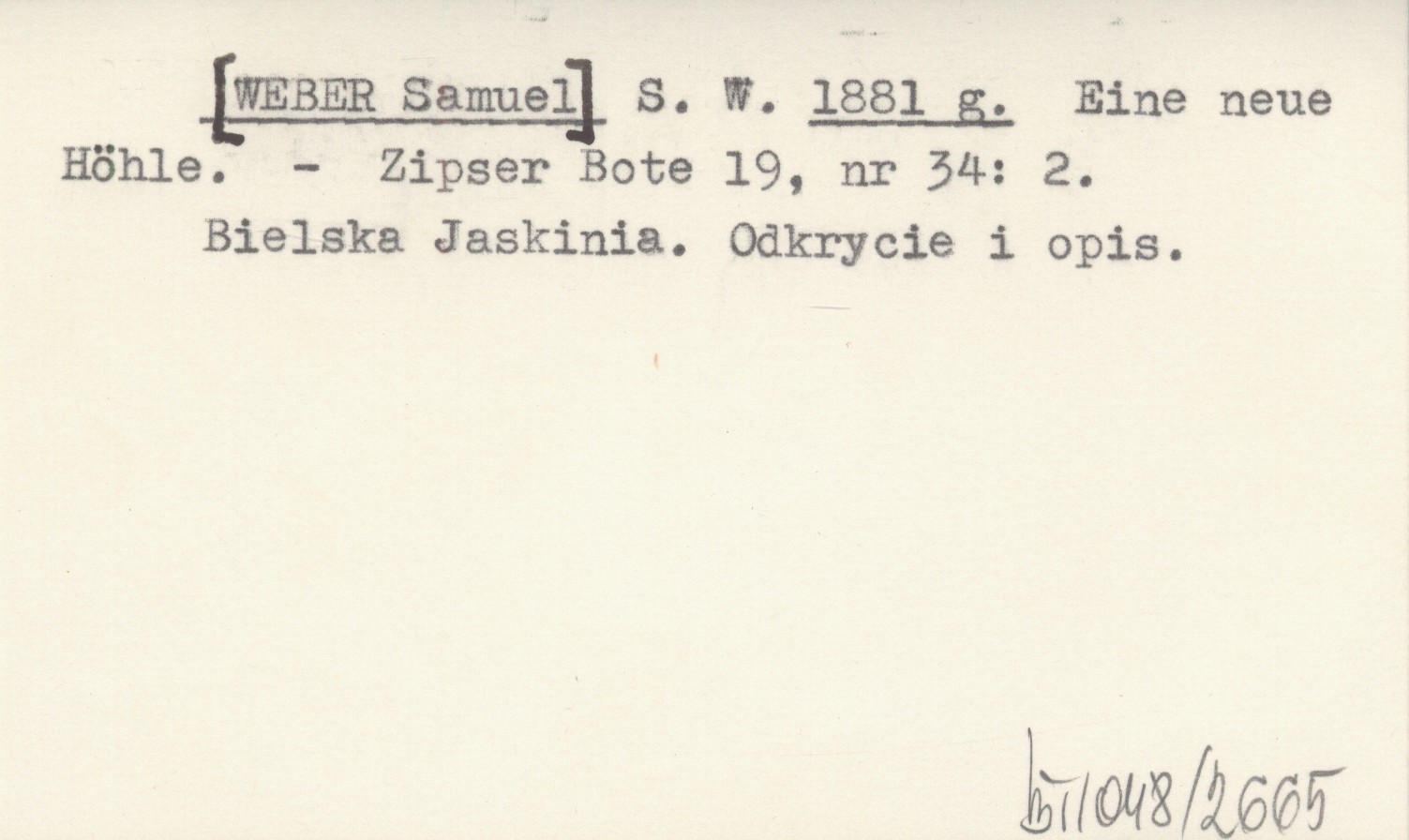 Zipser Bote, 19, nr 34: 2. Bielska Jaskinia. Odkrycie i opis.