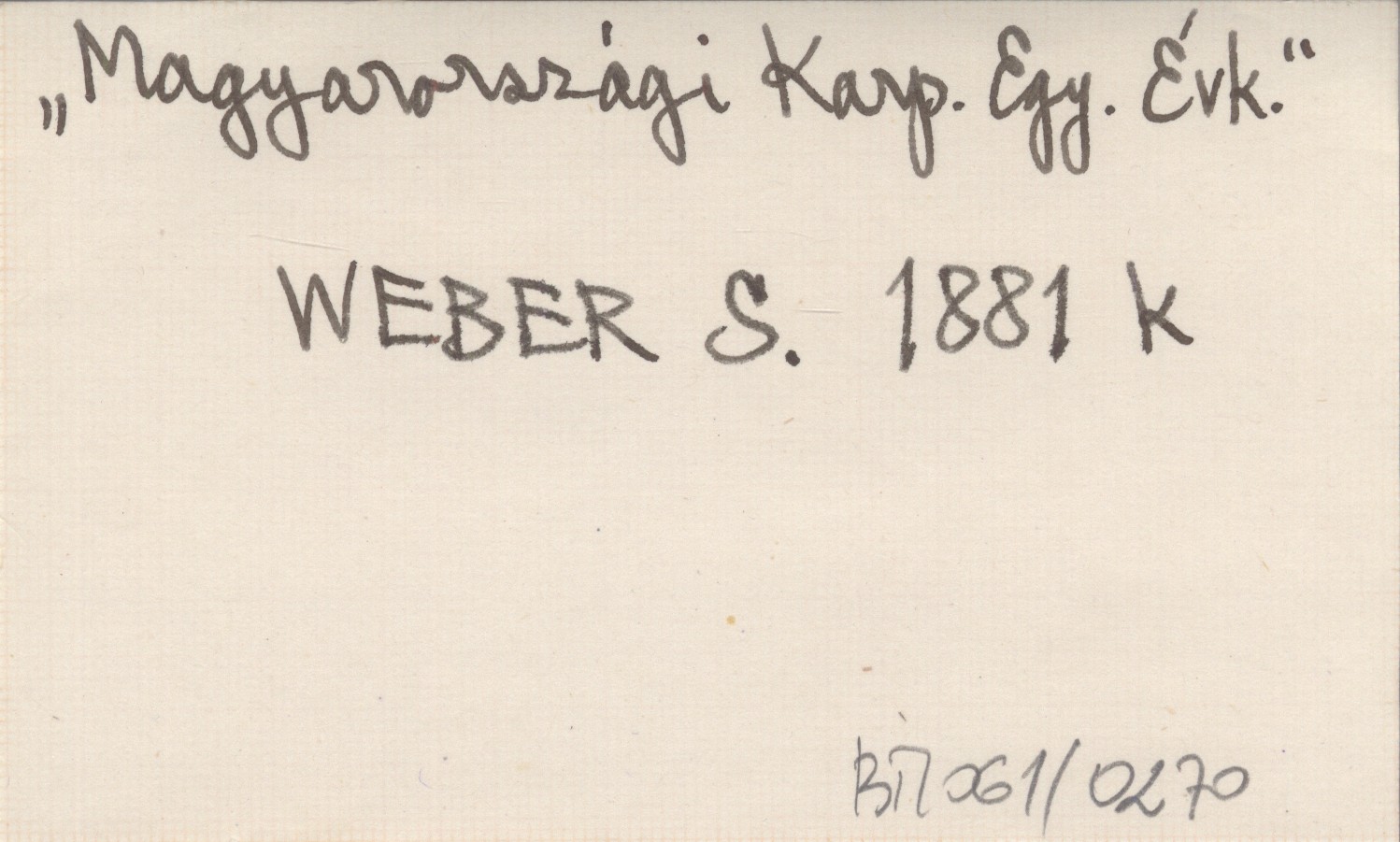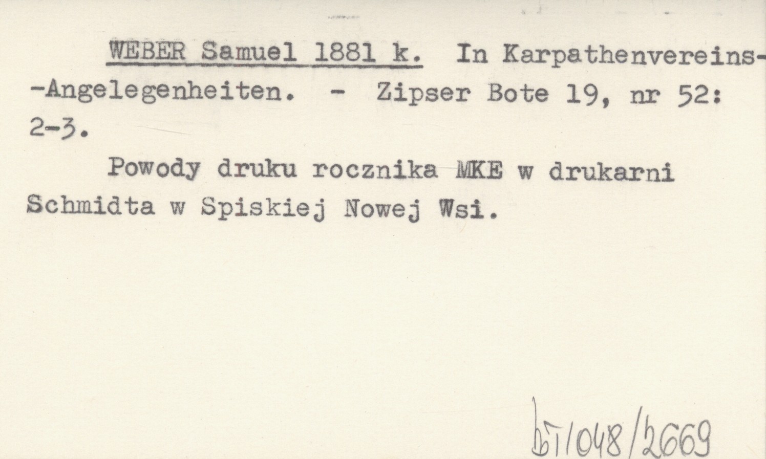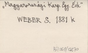WEBER Samuel 1881 k In Karpathenvereins-Angelegenheiten.