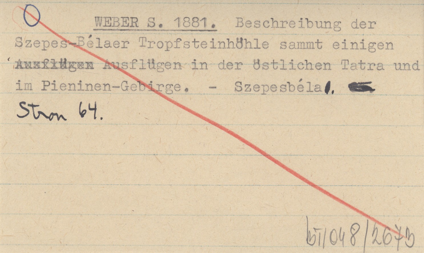 WEBER S. 1881 Beschreibung der Szepes-Bélaer Tropfsteinhöhle sammt einigen Ausflügen in der östlichen Tatra und im Pieninen-Gebirge.