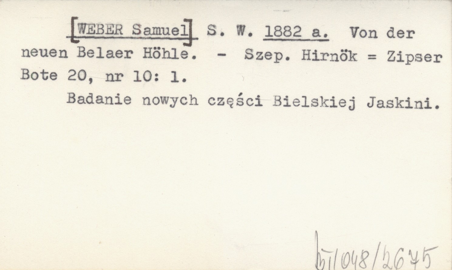 S. W. [WEBER Samuel] 1882 a Von der neuen Belaer Höhle.