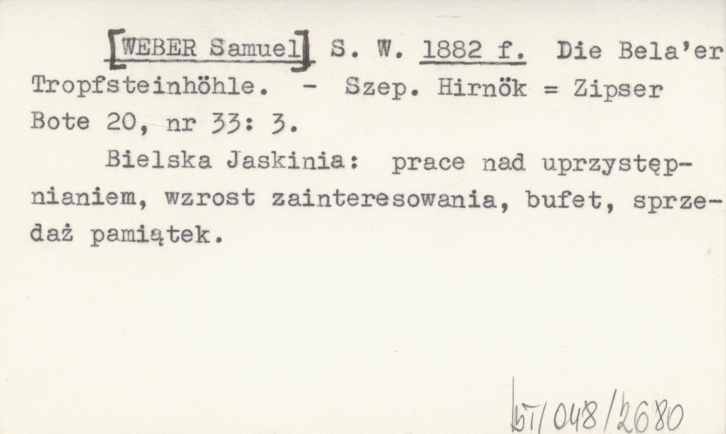 Szepesi Hirnök = Zipser Bote, 20, nr 33: 3. Bielska Jaskinia: prace nad uprzystępnianiem, wzrost zainteresowania, bufet, sprzedaż pamiątek.
