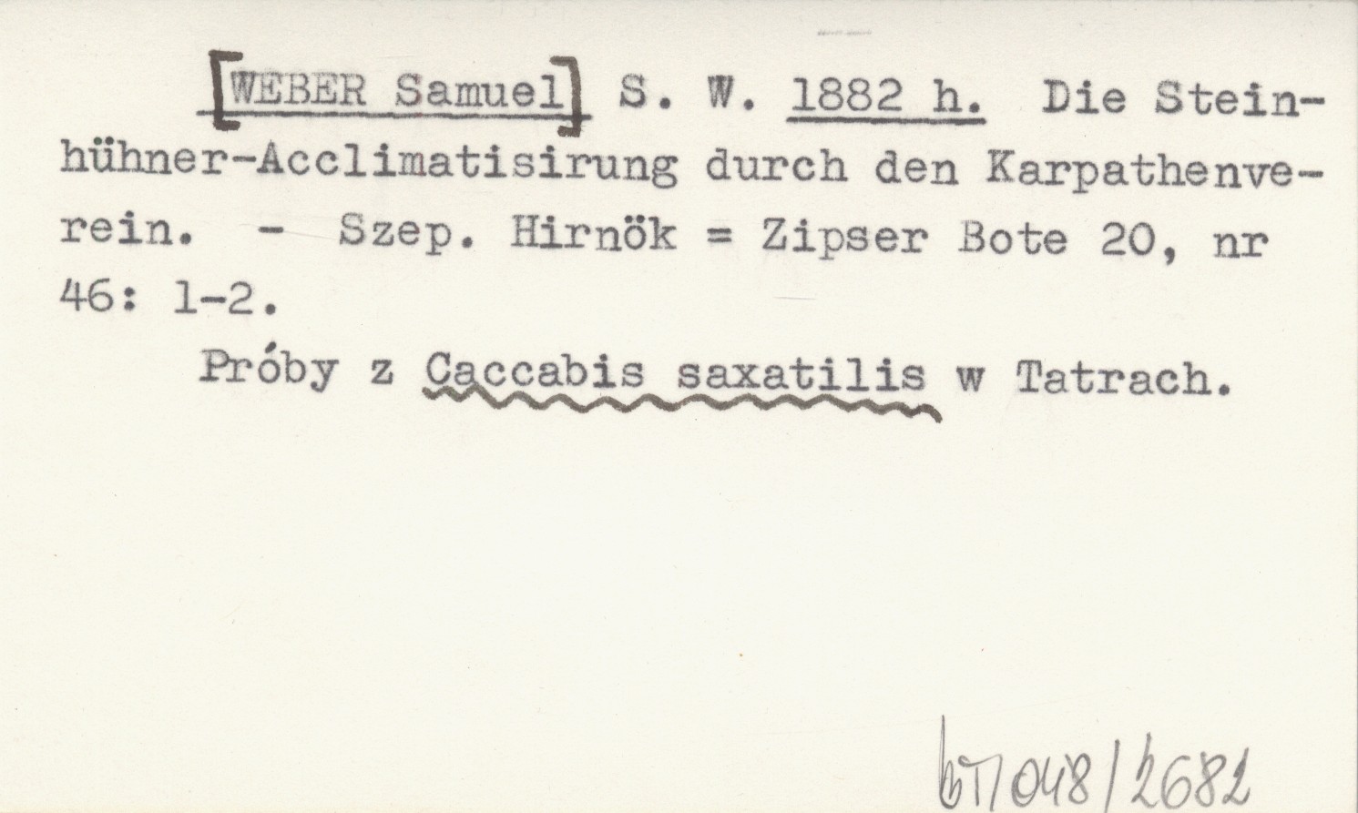 S. W. [WEBER Samuel] 1882 h Die Steinhühner-Acclimatisirung durch den Karpathenverein.