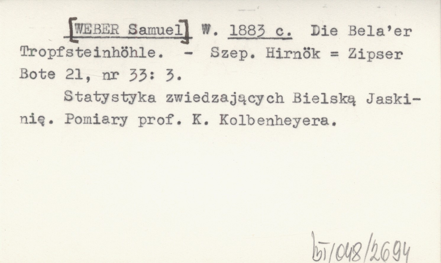Szepesi Hirnök = Zipser Bote, 21, nr 33: 3. Statystyka zwiedzających Bielską Jaskinię. Pomiary prof. K. Kolbenheyera.