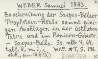 S. W. [WEBER Samuel] 1883 d Bélaer Tropfsteinhöhle.
