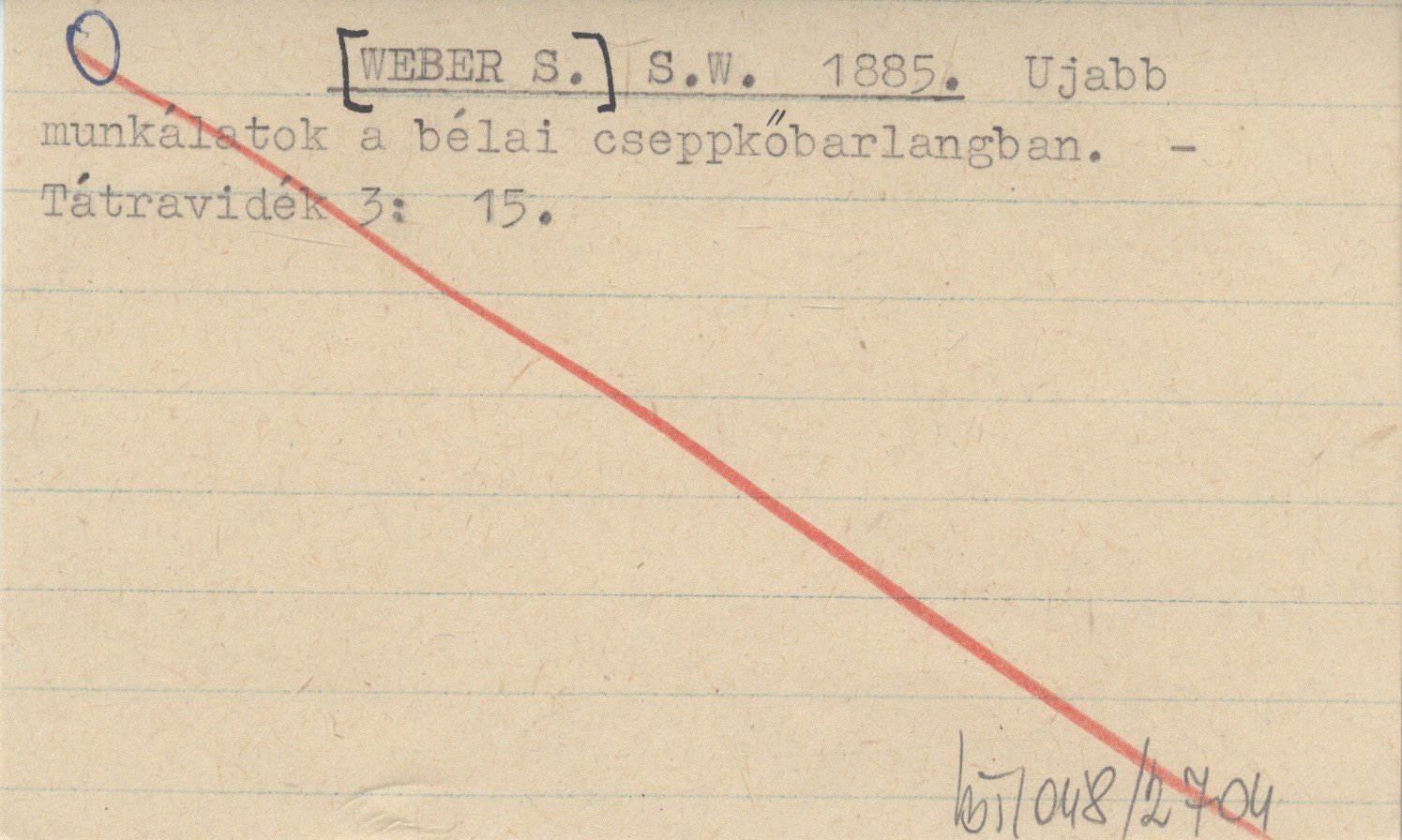 S.W. [WEBER S.] 1885 Ujabb munkálatok a bélai cseppkőbarlangban.