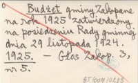 Budżet gminy Zakopane na rok 1925 zatwierdzony na posiedzeniu Rady gminnej dnia 29 listopada 1924. 1925