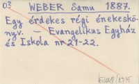 WEBER Samu 1887 Egy érdekes régi énekeskönyv.