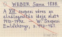 WEBER Samu 1888 A XVI szepesi város az elzálogosítás ideje alatt 1412-1772.