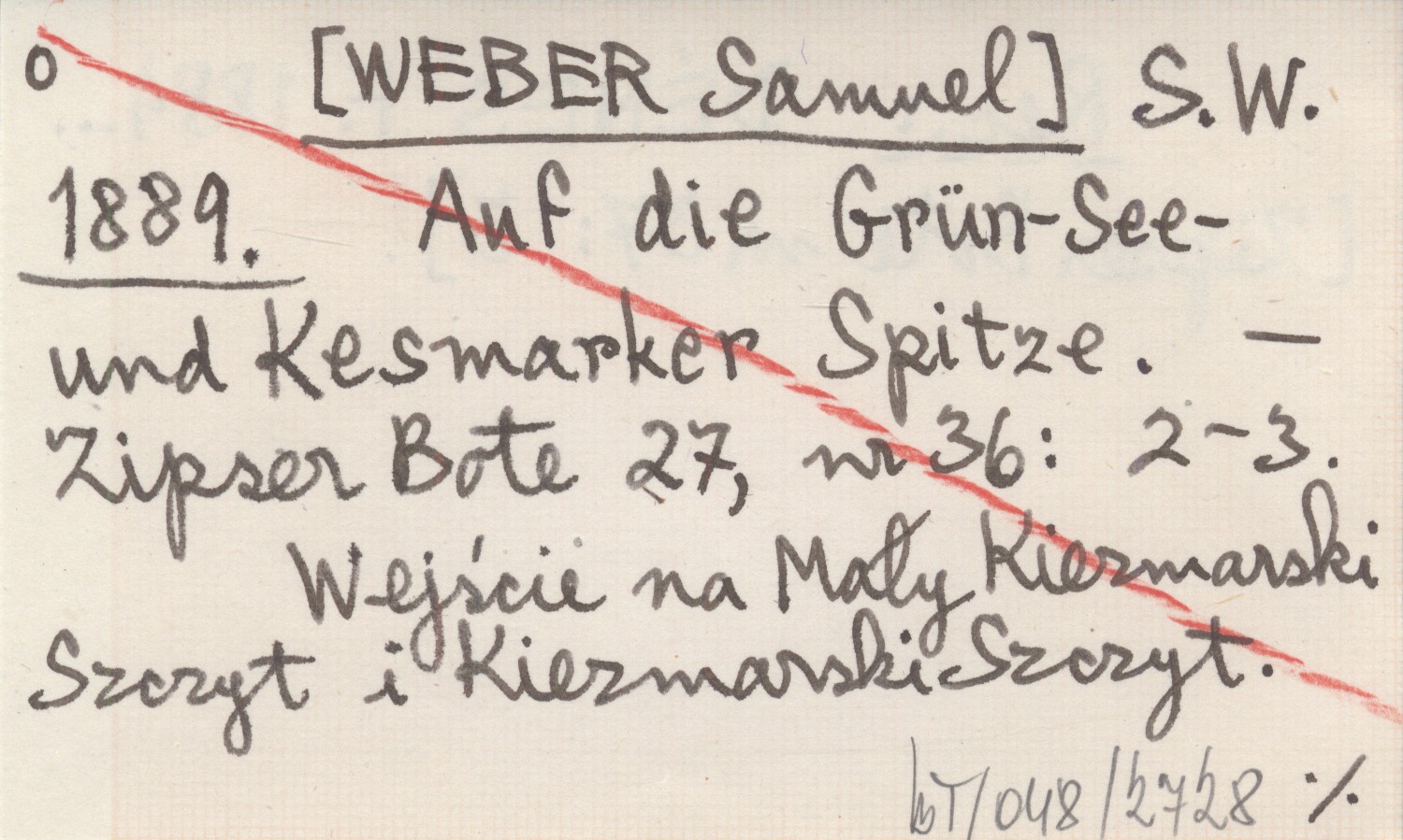 S.W. [WEBER Samuel] 1889 Auf die Grün-See- und Kesmarker Spitze.