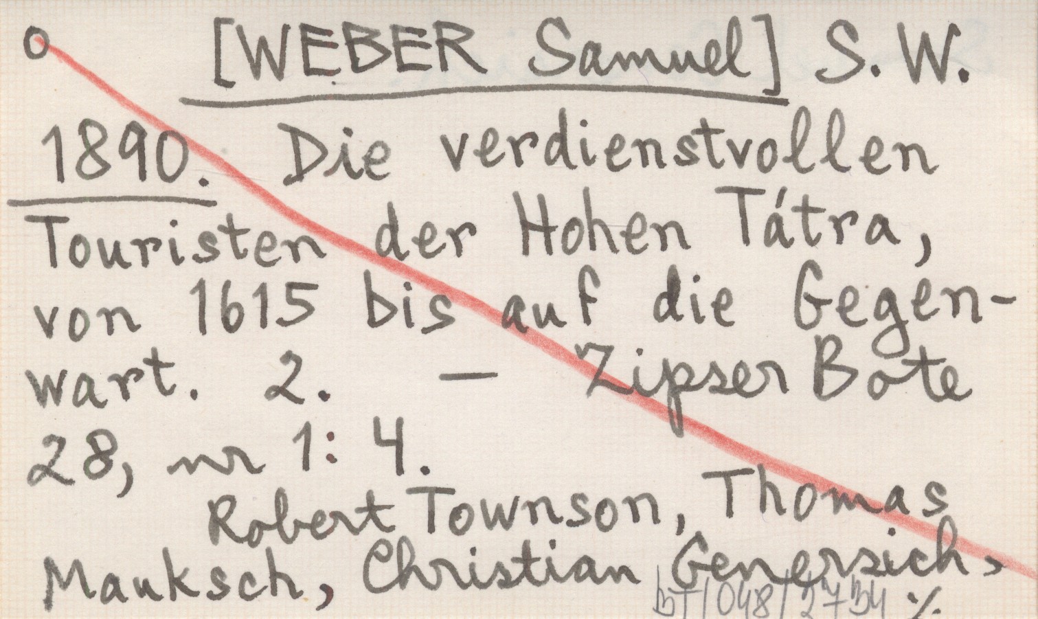 S. W. [WEBER Samuel] 1890 Die verdienstvollen Touristen der Hohen Tátra, von 1615 bis auf die Gegenwart. 2.