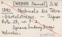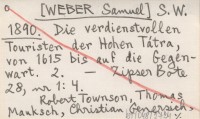 S.W. [WEBER Samuel] 1890 Nochmals die Tátra-Gürtelstrasse.