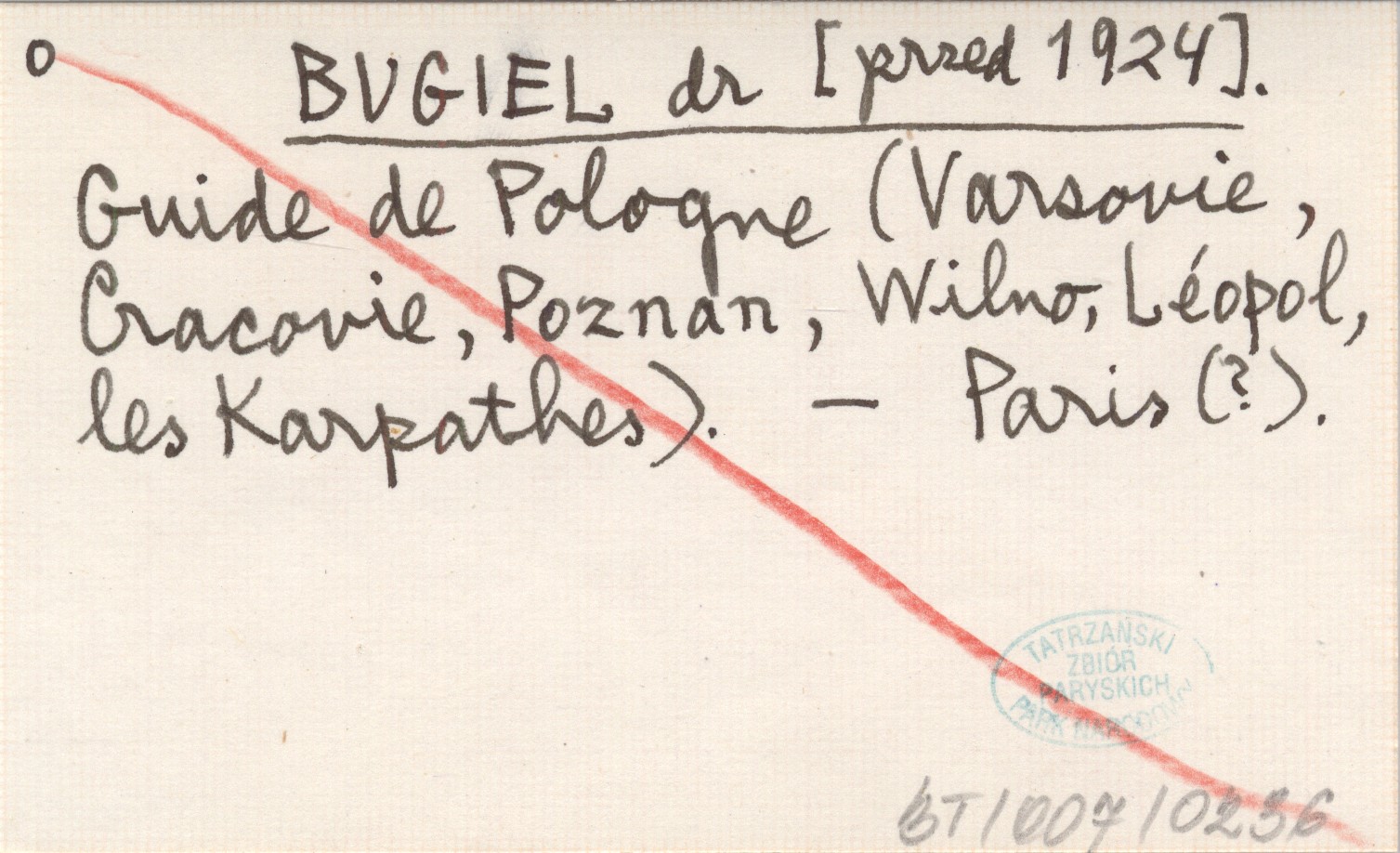 BUGIEL [przed 1924] Guide de Pologne (Varsovie, Cracovie, Poznan, Wilno, Léopol, les Karpathes).