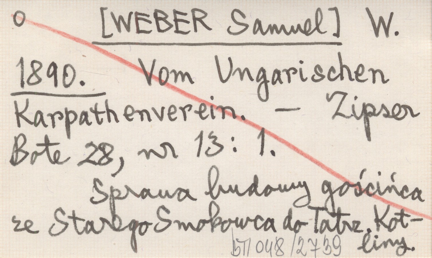 W. [WEBER Samuel] 1890 Vom Ungarischen Karpathenverein.