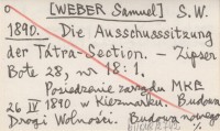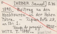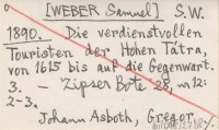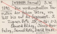 S.W. [WEBER Samuel] 1890 Die verdienstvollen Touristen der Hohen Tátra, von 1615 bis auf die Gegenwart. 5.