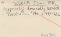 WEBER Samu 1890 Szepességi árszabály 1610-böl.
