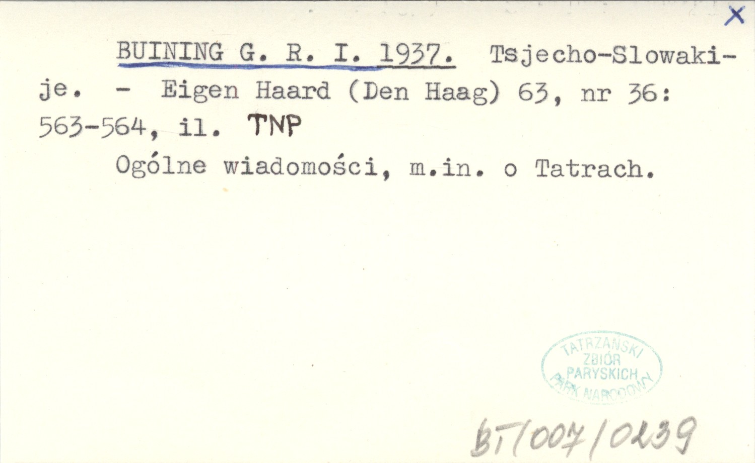 Eigen Haard (Den Haag) , 63, nr 36: 563-564, il. Ogólne wiadomości, m. in. o Tatrach.