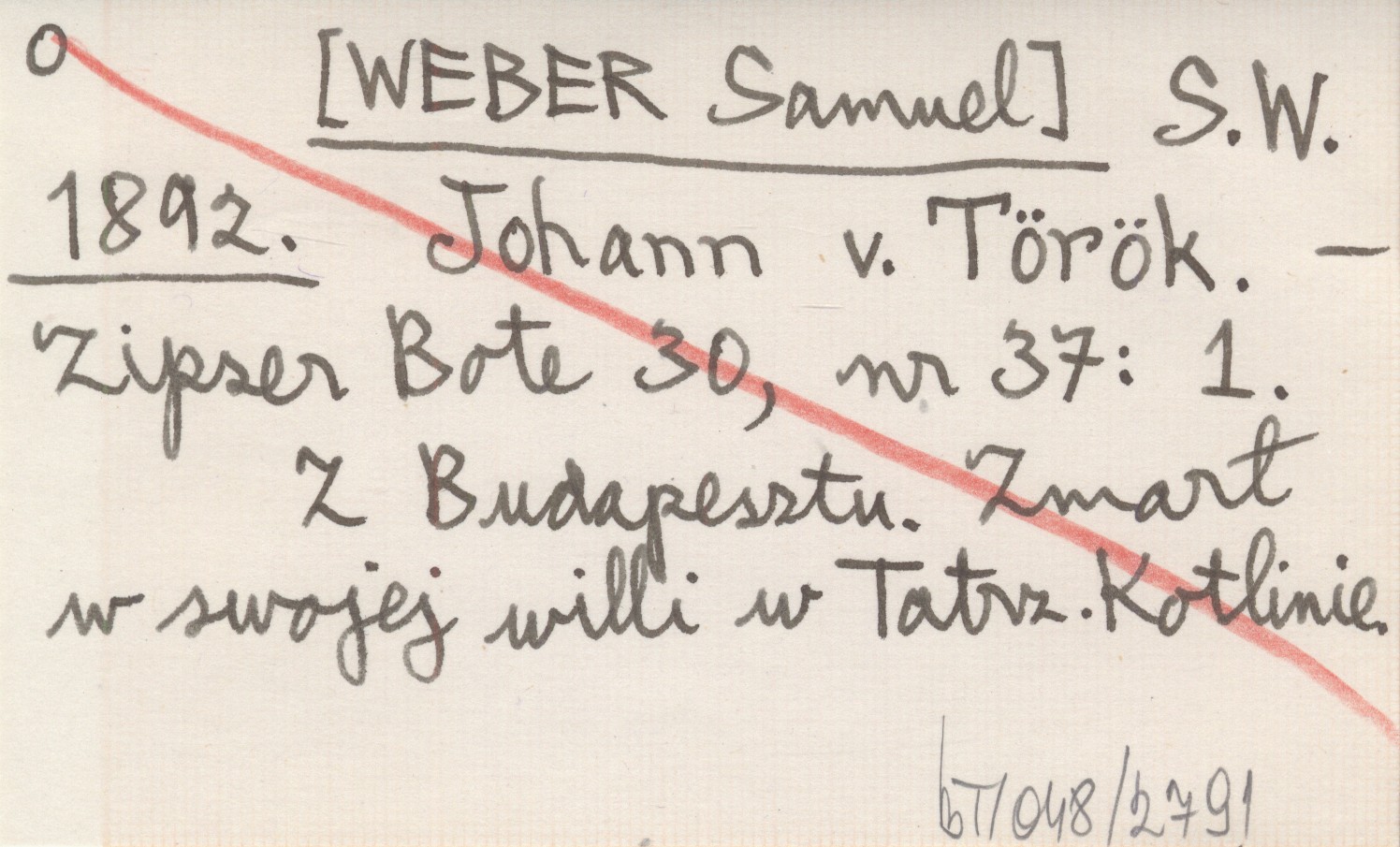 Zipser Bote, 30, nr 37: 1. Z Budapesztu. Zmarł w swojej willi w Tatrz. Kotlinie.
