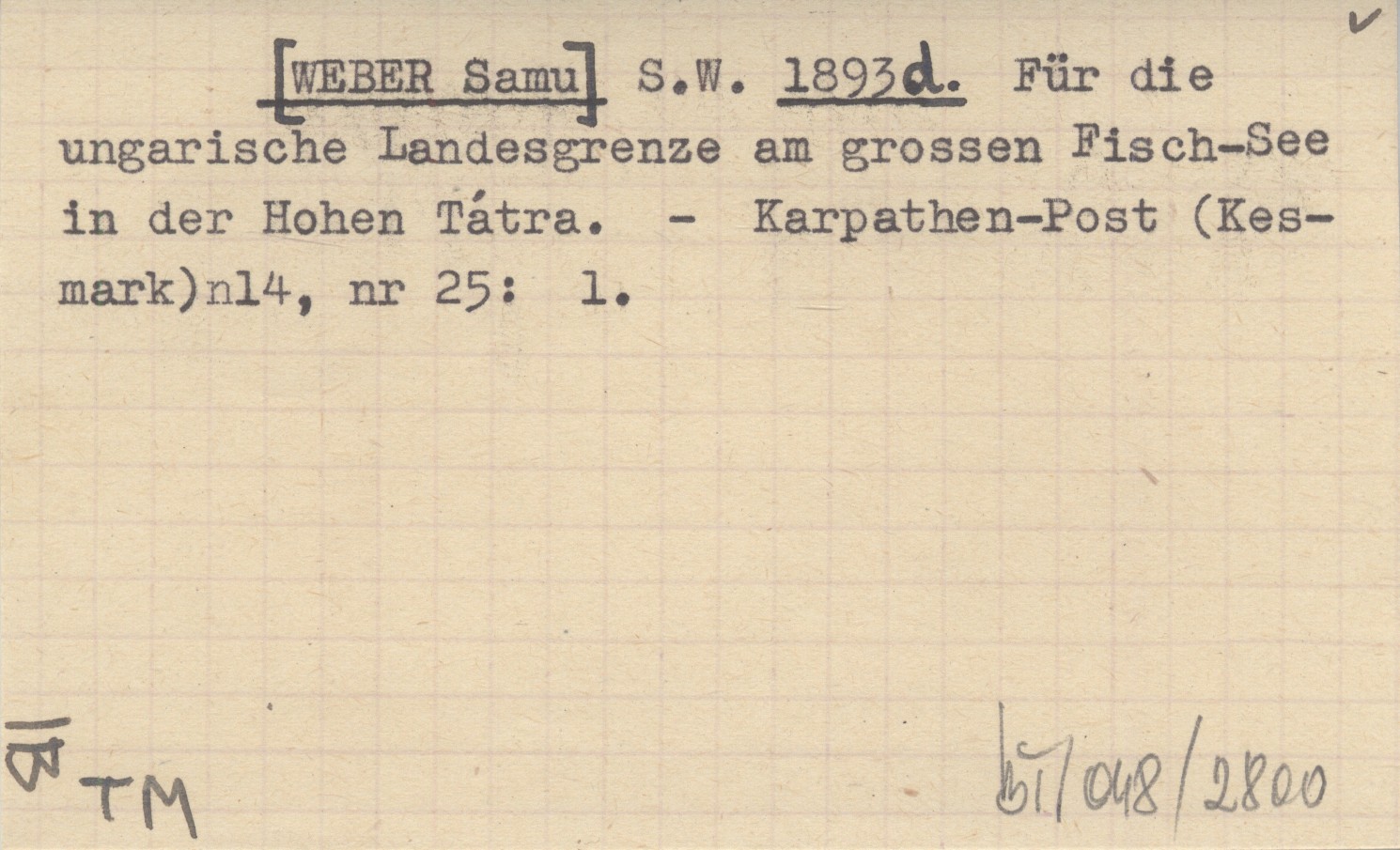 S.W. [WEBER Samu] 1893 d Für die ungarische Landesgrenze am grossen Fisch-See in der Hohen Tátra.