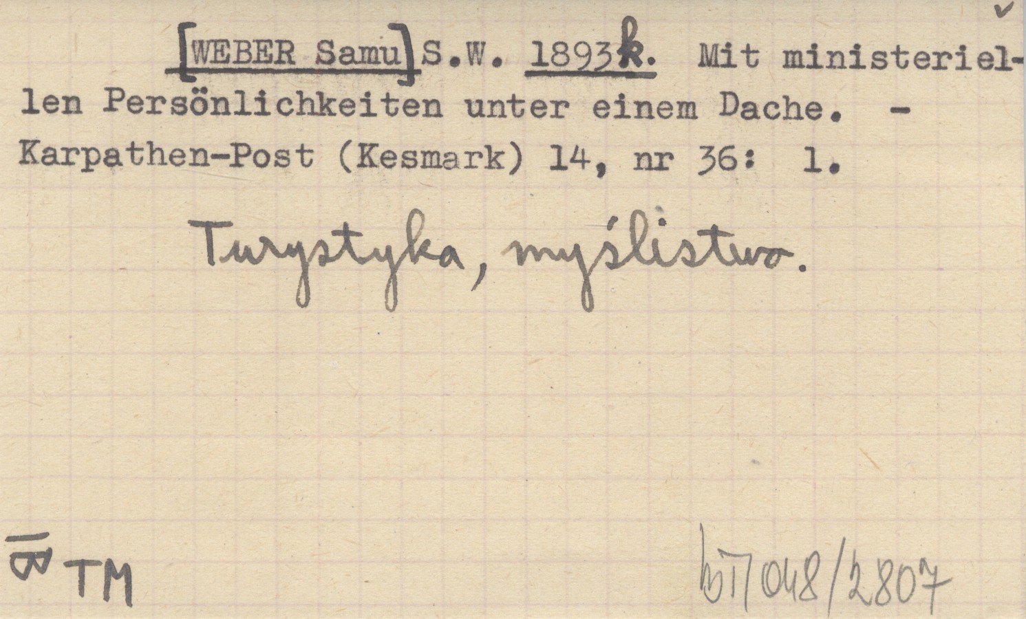 Karpathen-Post (Kesmark) , 14, nr 36: 1. Turystyka, myślistwo.