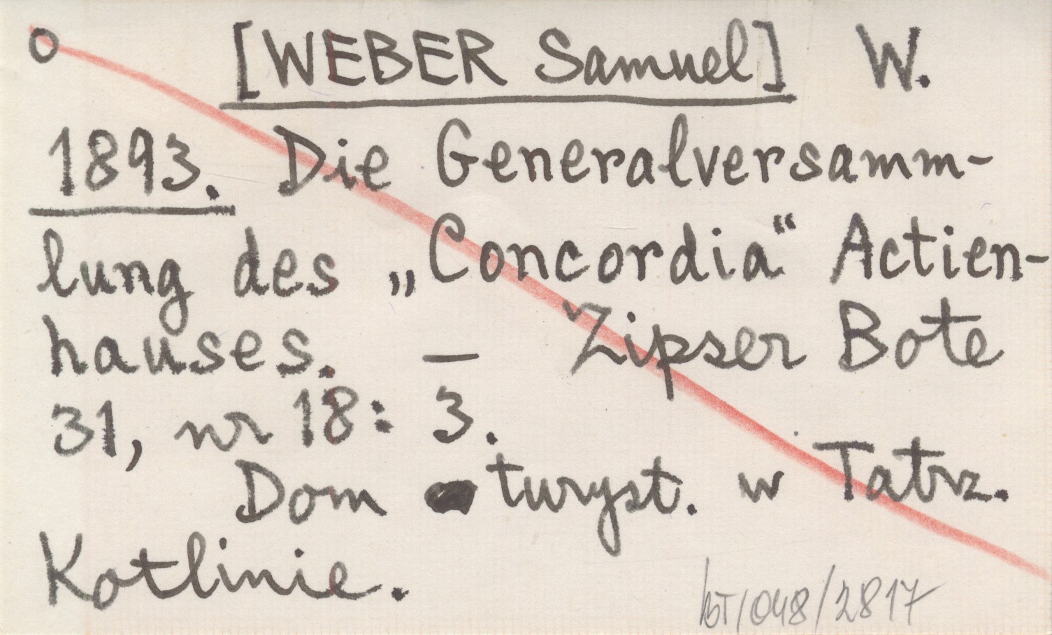 W. [WEBER Samuel] 1893 Die Generalversammlung des "Concordia" Actienhauses.