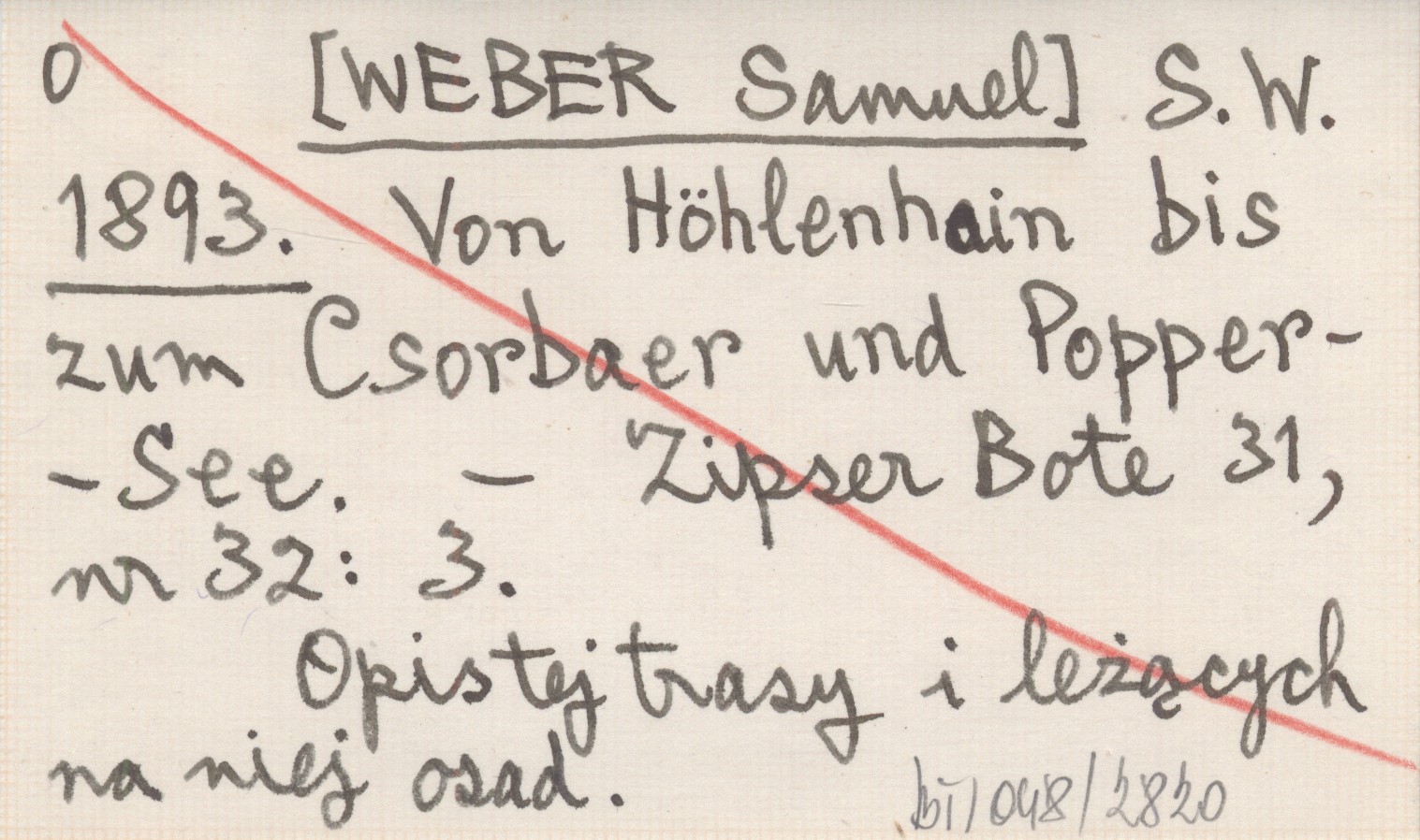 S.W. [WEBER Samuel] 1893 Von Höhlenhain bis zum Csorbaer und Popper-See.