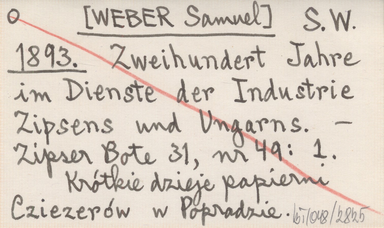 S. W. [WEBER Samuel] 1893 Zweihundert Jahre im Dienste der Industrie Zipsens und Ungarns.