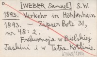 S.W. [WEBER Samuel] 1893 Von Höhlenhain bis zum Csorbaer und Popper-See.