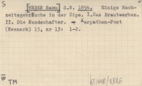 S.W. [WEBER Samu] 1894 Einige Hochzeitsgebrauche in der Zips. I. Das Brautwerben. II. Die Kundschafter.