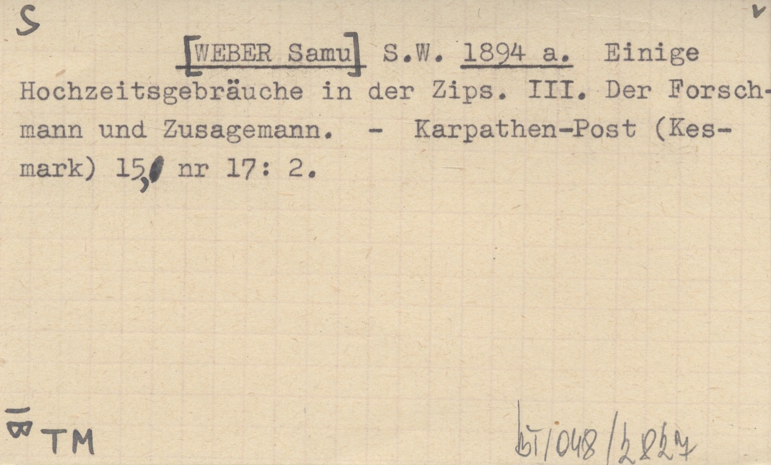 S.W. [WEBER Samu] 1894 a Einige Hochzeitsgebräuche in der Zips. III. Der Forschmann und Zusagemann.