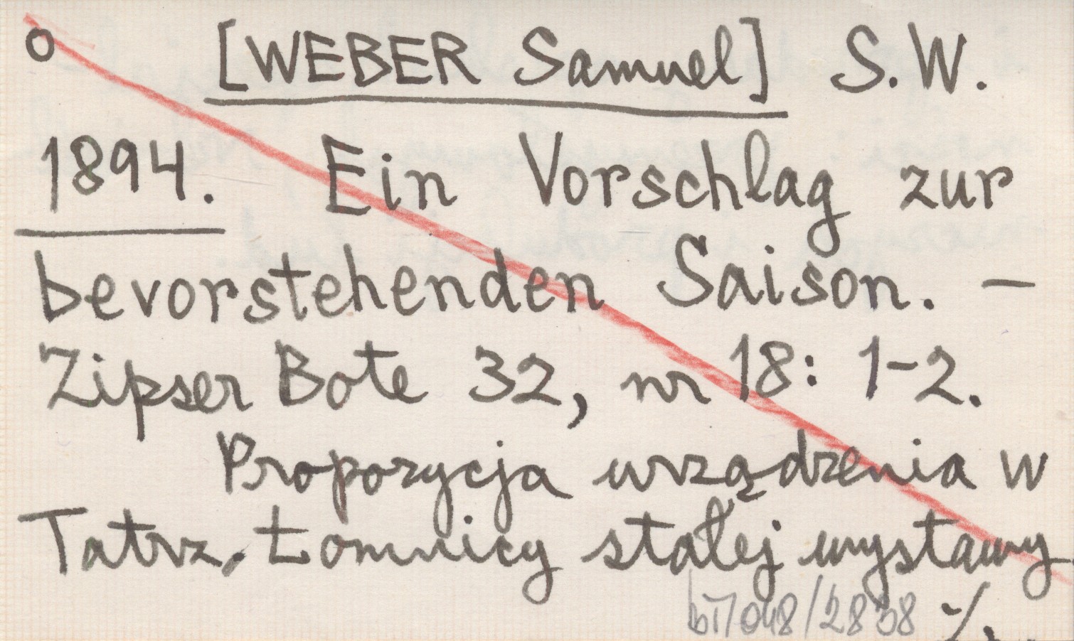S.W. [WEBER Samuel] 1894 Ein Vorschlag zur bevorstehenden Saison.