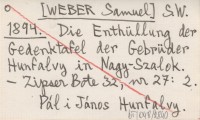 S.W. [WEBER Samuel] 1894 Die Enthüllung der Gedenktafel der Gebrüder Hunfalvy in Nagy-Szalok.