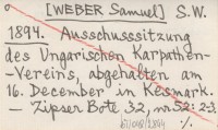 S.W. [WEBER Samuel] 1894 Ausschusssitzung des Ungarischen Karpathen-Vereins, abgehalten am 16. December in Kesmark.