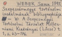 WEBER Samuel 1895 Szepesvármegye történelmi irodlmának bibliographiaja.