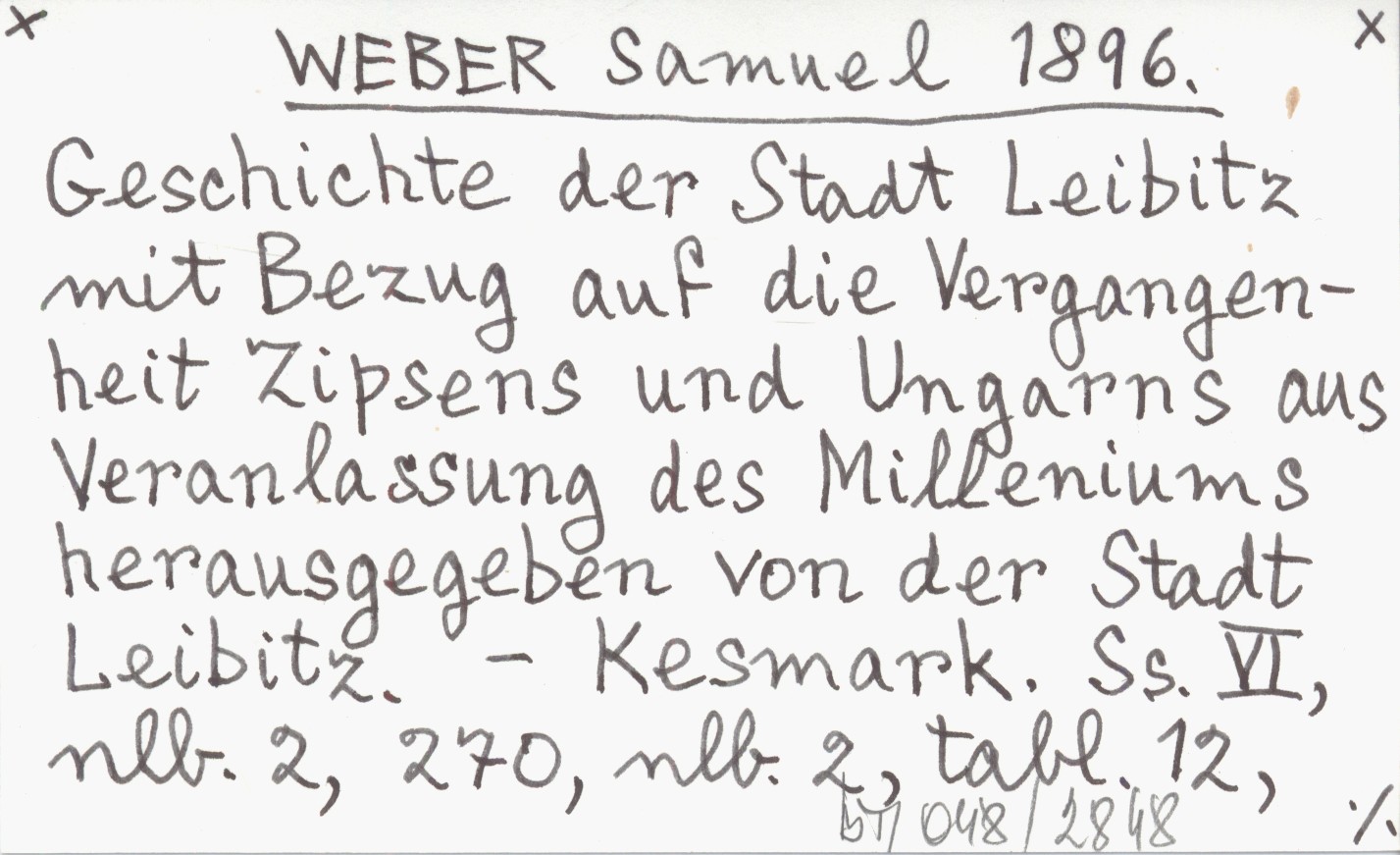 WEBER Samuel 1896 Geschichte der Stadt Leibitz mit Bezug auf die Vergangenheit Zipsens und Ungarns aus Veranlassung des Milleniums herausgegeben von der Stadt Leibitz.