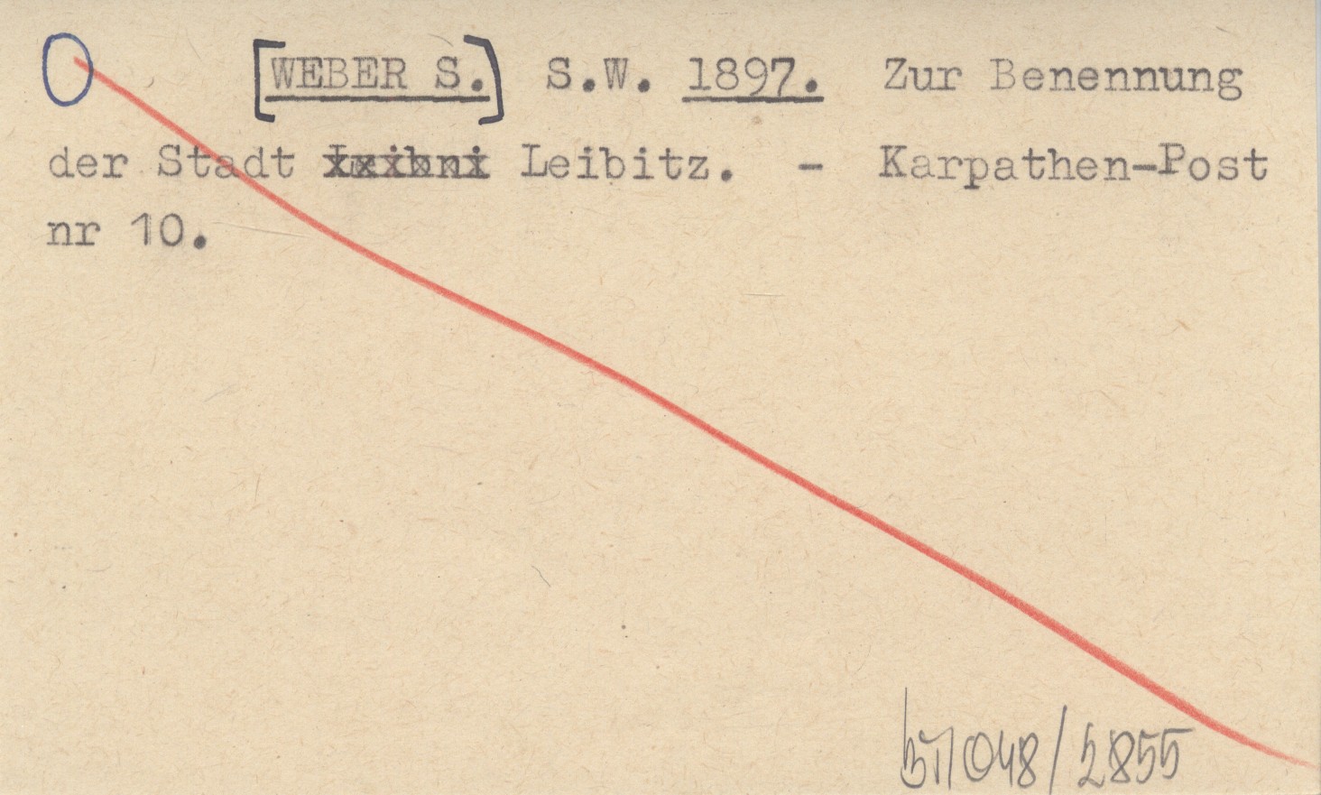 S.W. [WEBER S.] 1897 Zur Benennung der Stadt Leibitz.