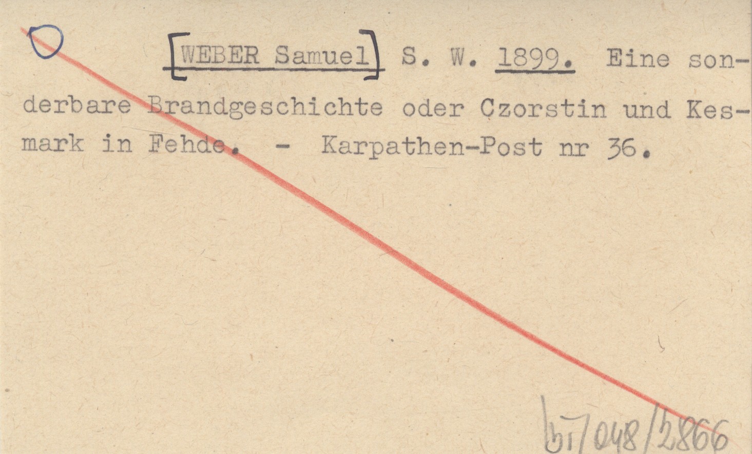 S. W. [WEBER Samuel] 1899 Eine sonderbare Brandgeschichte oder Czorstin und Kesmark in Fehde.