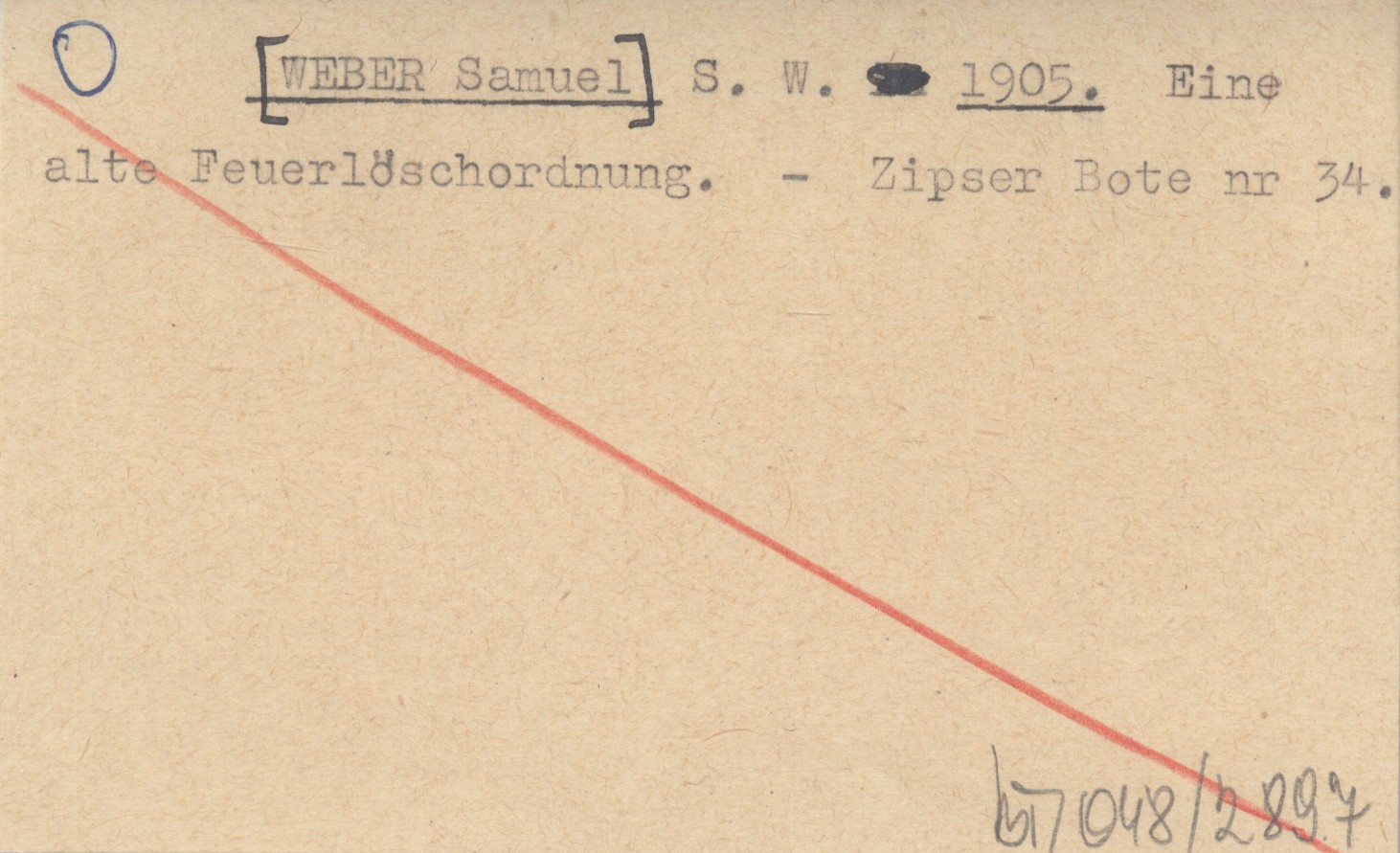 S. W. [WEBER Samuel] 1905 Eine alte Feuerlöschordnung.
