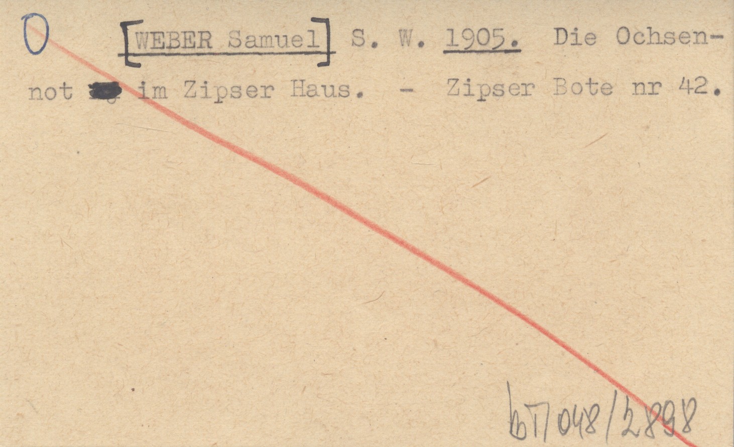 S. W. [WEBER Samuel] 1905 Die Ochsennot im Zipser Haus.