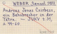 WEBER Samuel 1907 Andreas Jonas Czirbesz, ein Bahnbrecher in der Tátra.