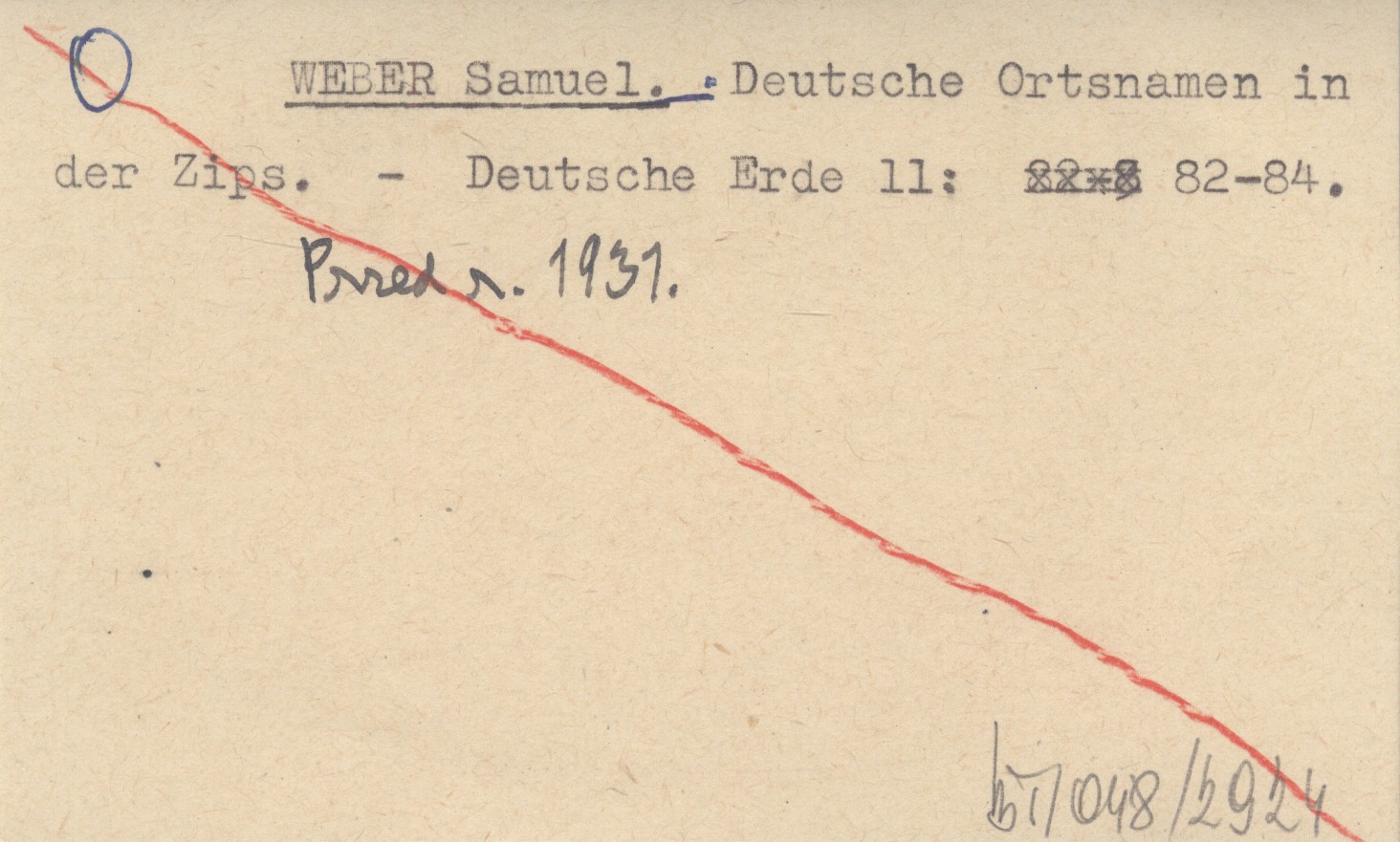 WEBER Samuel przed 1931 Deutsche Ortsnamen in der Zips.