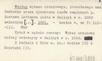 Według wykazu urzędowego, przesłanego nam łaskawie przez dyrektora lasów rządowych p. Gustawa Lettnera ubito w Galicyi w r. 1880 zwierzyny [...]. 1881