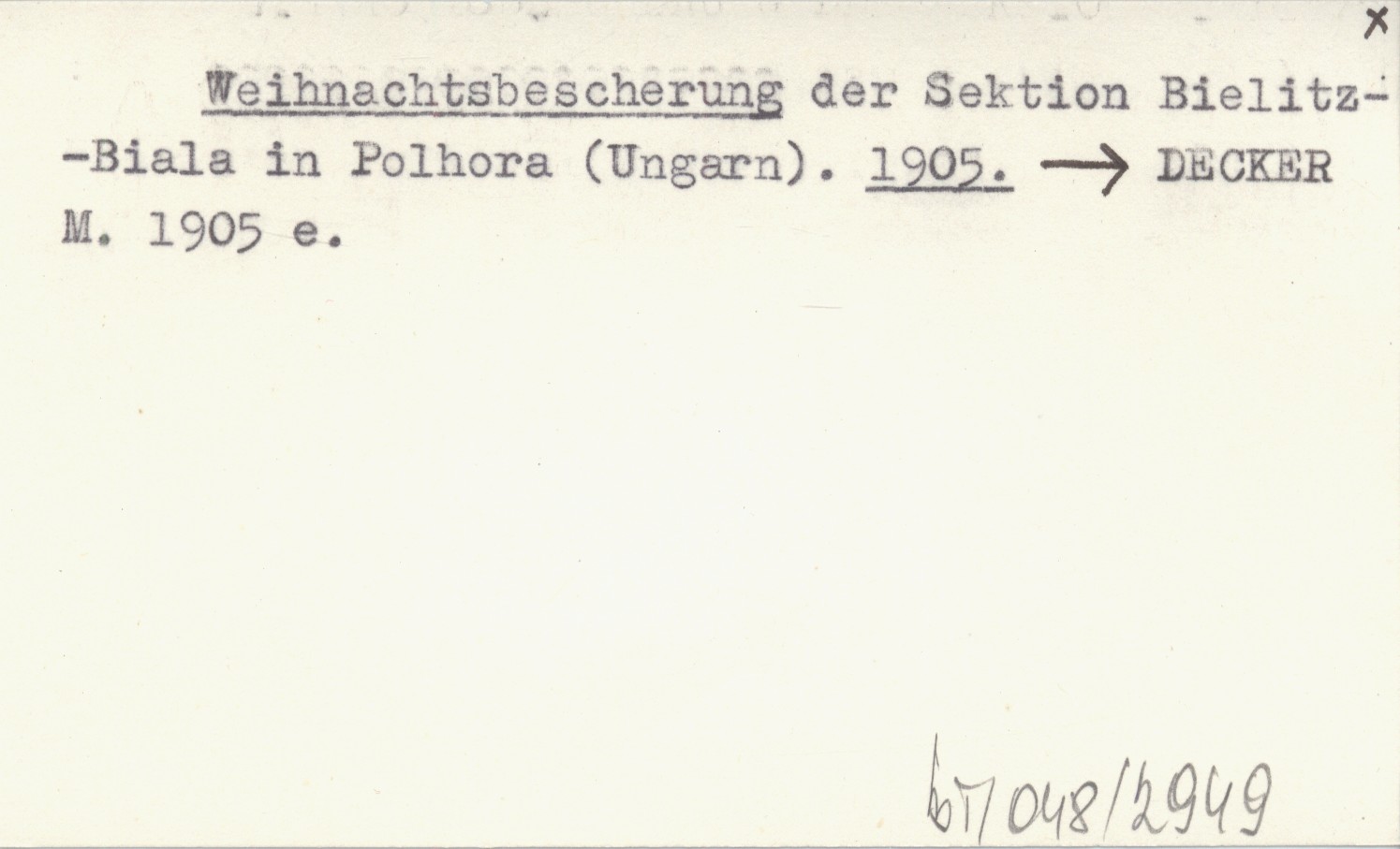Weihnachtsbescherung der Sektion Bielitz-Biala in Polhora (Ungarn). 1905