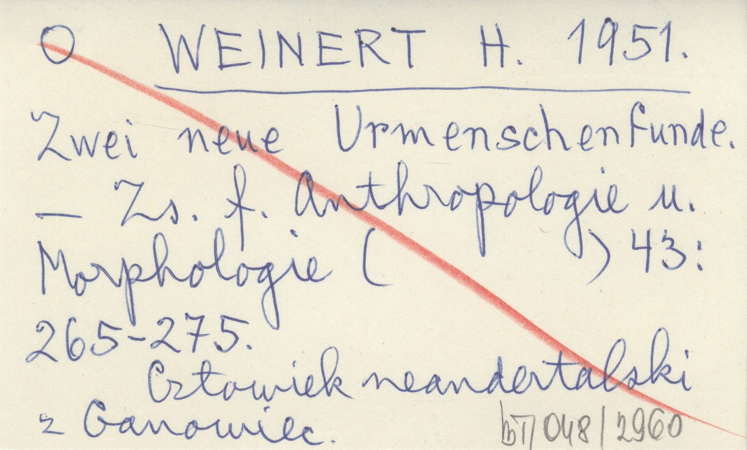 Zs. f. Anthropologie u. Morphologie, 43: 265-275. Człowiek neandertalski z Ganowiec.