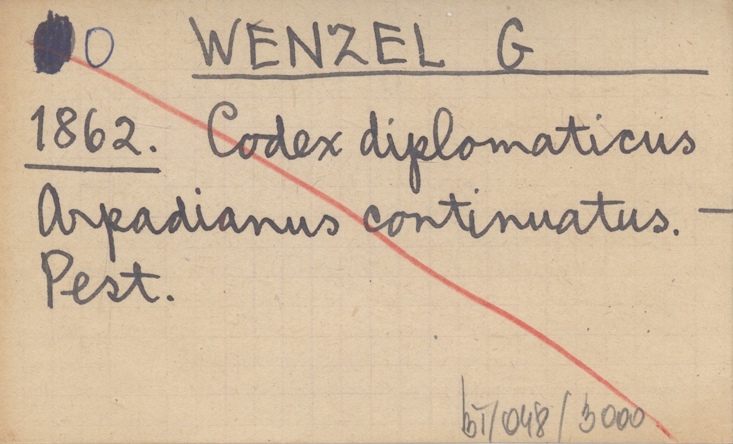 WENZEL G. 1862 Codex diplomaticus Arpadianus continuatus.