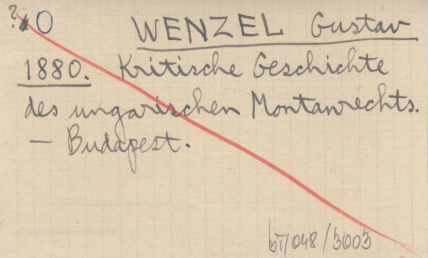 WENZEL Gustav 1880 Kritische Geschichte des ungarischen Montanrechts.