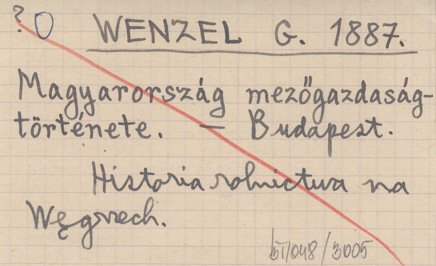 WENZEL G. 1887 Magyarország mezőgazdaságtörténete.