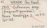 WENDE Jan Karol 1937 Człowiecze drogi (fragment powie¶ci).