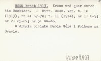 WENK Ernst 1913 Kreuz und quer durch die Beskiden.